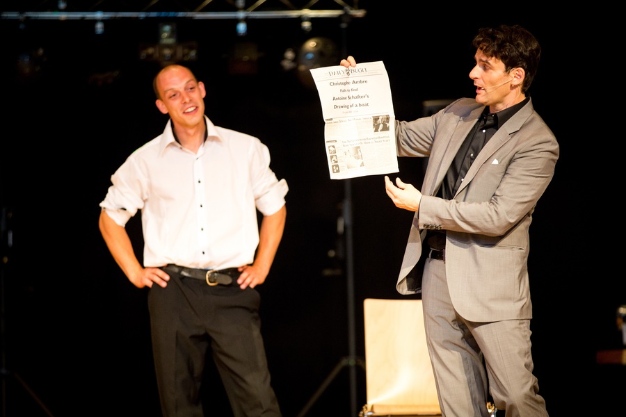 Mentaliste Christophe Ambre durant son spectacle de mentalisme "invisible connexion"